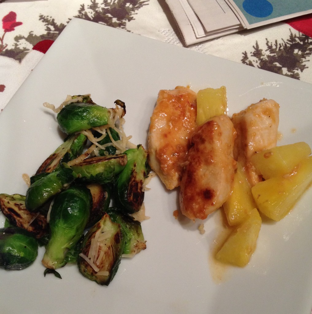 Dinner: Hawaiian chicken with pineapple and pan-seared brussels sprouts with parmesan